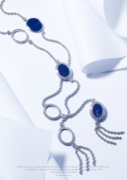 Montre-sautoir en or blanc 18k maille torsadée sertie de 192 diamants taille brillant (environ 9,80carats), de 2 éléments en lapis-lazuli et d’un cadran en lapis-lazuli.Mouvement quartz Piaget 56P. Collection Extremely PIAGET © Gilbert Benesty