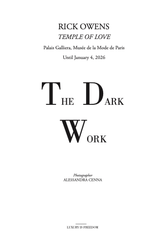 RICK OWENS TEMPLE OF LOVE Palais Galliera, Musée de la Mode de Paris Until January 4, 2026 THE DARK WORK Photographer ALESSANDRA CENNA LUXURY IS FREEDOM
