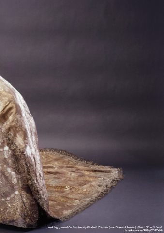 Wedding gown of Duchess Hedvig Elisabeth Charlotta (later Queen of Sweden). Photo: Göran Schmidt