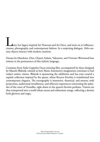 by Manolo Blahnik, remind us how Marie Antoinette’s imagination continues to fuel