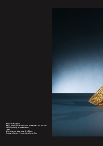Peacock Headpiece Stage jewelry created for Sarah Bernhardt in the title role of Cleopatra by Victorien Sardou 1890 Gilt metal and glass, circa 30 x 30 cm. Private collection Photo credit: Alberto Ricci