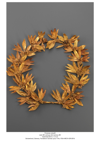 Funerary wreath Late 4th century-3rd century BC Gold leaf 22.5 x 1.5 cm Switzerland, Geneva, Fondation Gandur pour l’Art, FGA-ARCH-GR-0016