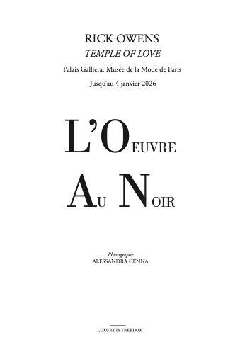 RICK OWENS TEMPLE OF LOVE Palais Galliera, Musée de la Mode de Paris Jusqu’au 4 janvier 2026 L’OEUVRE AU NOIR Photographe ALESSANDRA CENNA LUXURY IS FREEDOM