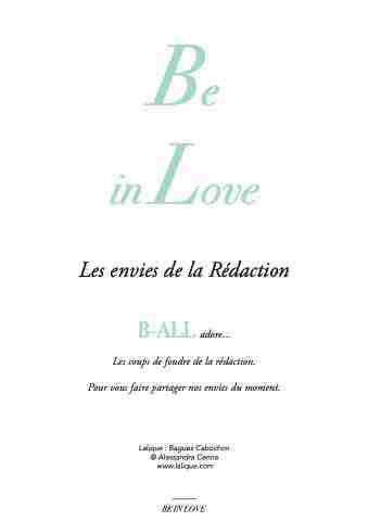 Be in Love Les envies de la Rédaction B-ALL adore... Les coups de foudre de la rédaction. Pour vous faire partager nos envies du moment. Lalique : Bagues Cabochon @ Alessandra Cenna www.lalique.com BE IN LOVE