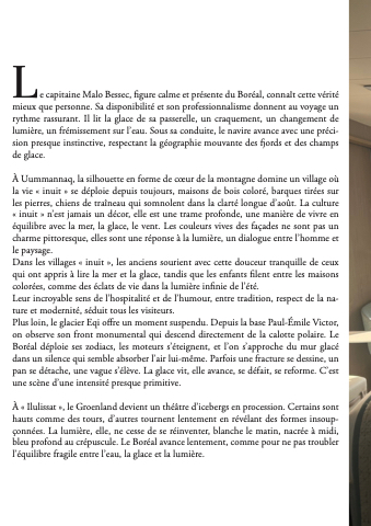 bleu profond au crépuscule. Le Boréal avance lentement, comme pour ne pas troubler