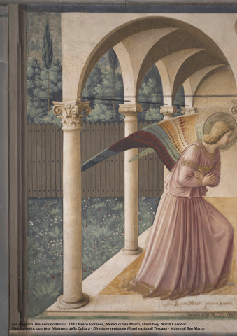 Fra Angelico The Annunciation c. 1443 fresco Florence, Museo di San Marco, Dormitory, North Corridor Photo credits: courtesy Ministero della Cultura - Direzione regionale Musei nazionali Toscana - Museo di San Marco