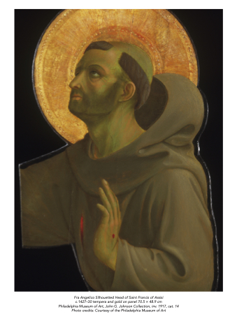 Fra Angelico Silhouetted Head of Saint Francis of Assisi c.1427–30 tempera and gold on panel 70.5 × 48.9 cm Philadelphia Museum of Art, John G. Johnson Collection, inv. 1917, cat. 14 Photo credits: Courtesy of the Philadelphia Museum of Art