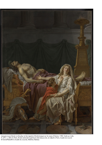 Jacques-Louis David, La Douleur et les regrets d’Andromaque sur le corps d’Hector, 1783. Huile sur toile,